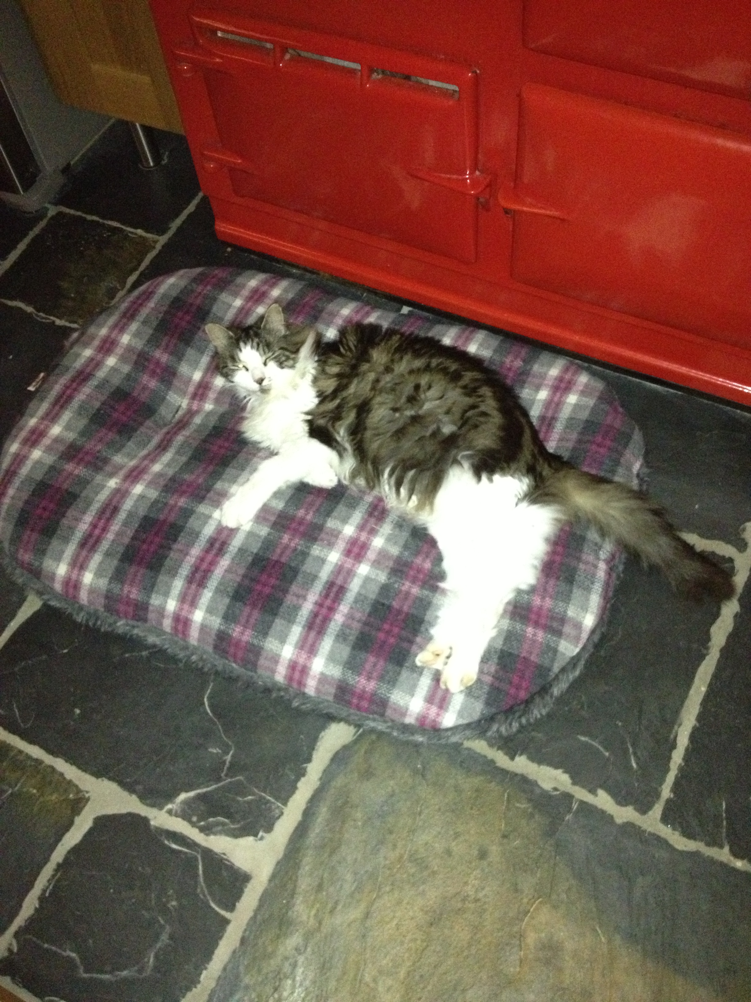 We buried him in the garden the next day, and I’ll get a stone with his name to lay over the top. Darcy is wandering round looking forlorn, as we all are. I haven’t yet had the heart to put the second cat bowl away. We all keep wishing he’d come back.