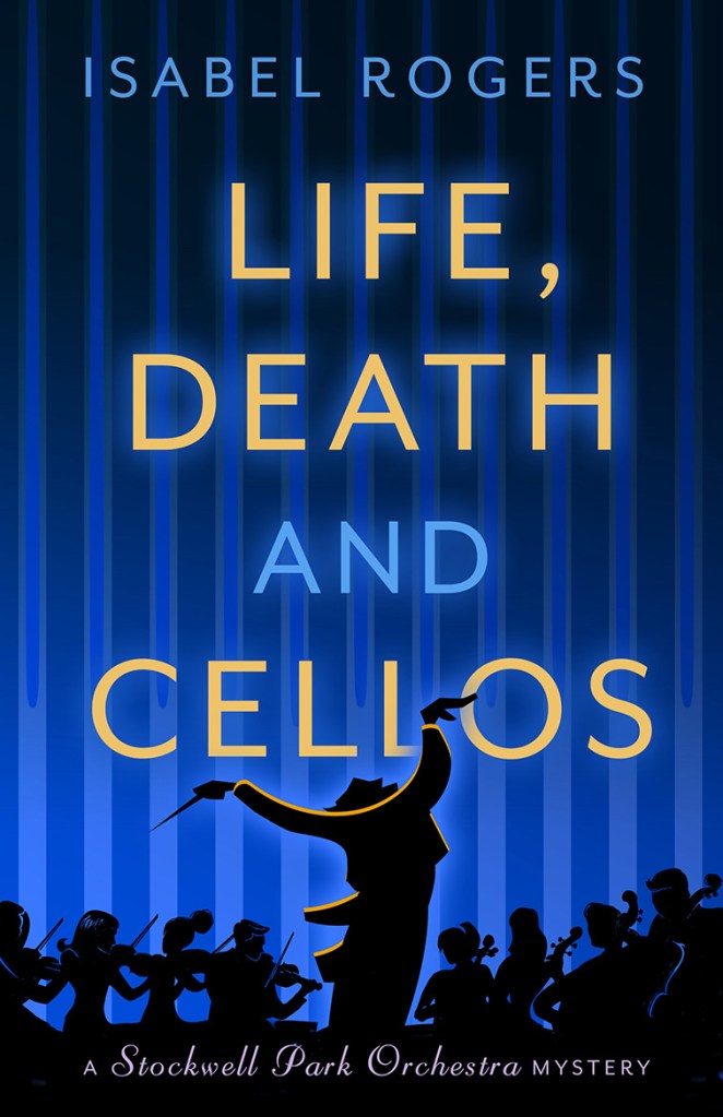 Once the strong image of Life, Death and Cellos had kicked off the series, Clare worked with those elements on the next cover for Bold as Brass. Still an eye-catching, full-saturation colour. Still the vertical lines I love, and the silhouettes of key characters to give a flavour of what was in the book. The physical size of Carl the trombonist looms nicely, and she caught the animosity between the two lots of school kids brilliantly.