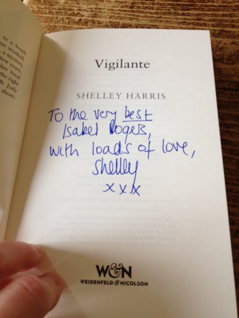 I am a bit more involved with Vigilante than with most newly published books. Shelley is – as well as a wonderful writer – a forthright person who believes in doing the right thing. (Full disclosure: Shelley is my friend and everything I say about her here is completely partial.) When the Philippines were devastated by a typhoon in 2013, Shelley joined other authors raising money for the Red Cross appeal by offering to name a character in her next novel after the highest bidder. Reader, I was that highest bidder. It was a bizarre and exciting thing to see my name in the story, and I’m so proud to be a tiny part of their final total of nearly £60,000 donated to the Philippines.
